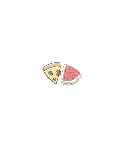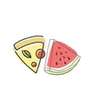 Una fetta di anguria e una fetta di pizza, unite, sullo stesso piano.